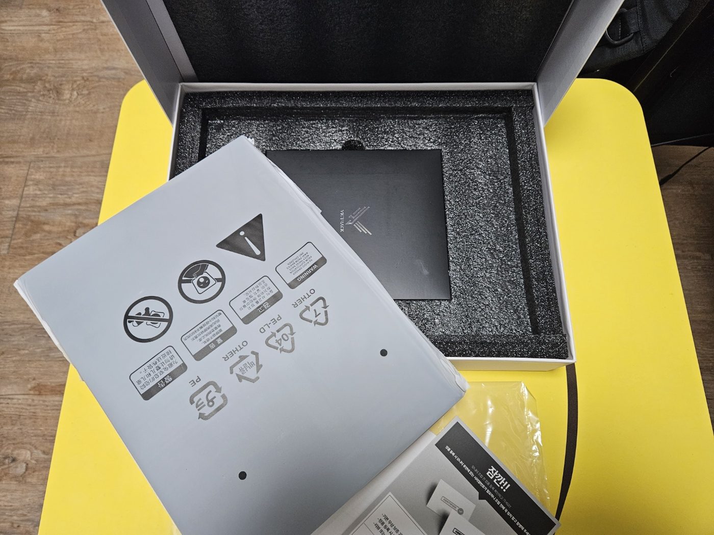 안에는 보증서와, 설명서, 필름과 케이블들이 들어있는 박스(c to use, c to c, c to hdmi)가 들어있습니다.