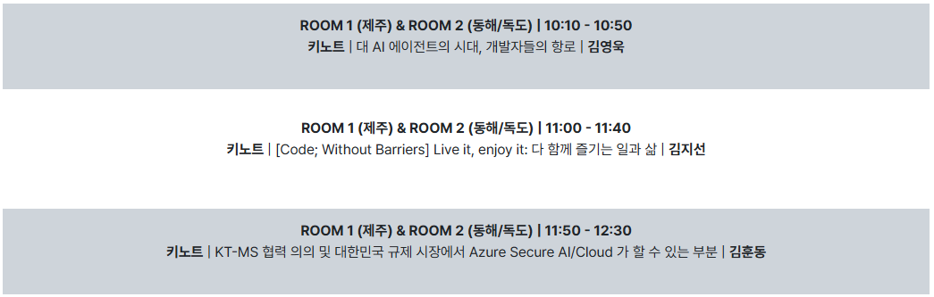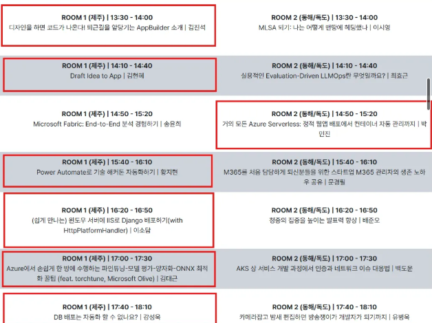 저는 파워 "J"라서 듣기 전에 모든 세션의 대략적인 내용을 보고 , 어떤 세션을 들을지 결정을 하고 출발해서