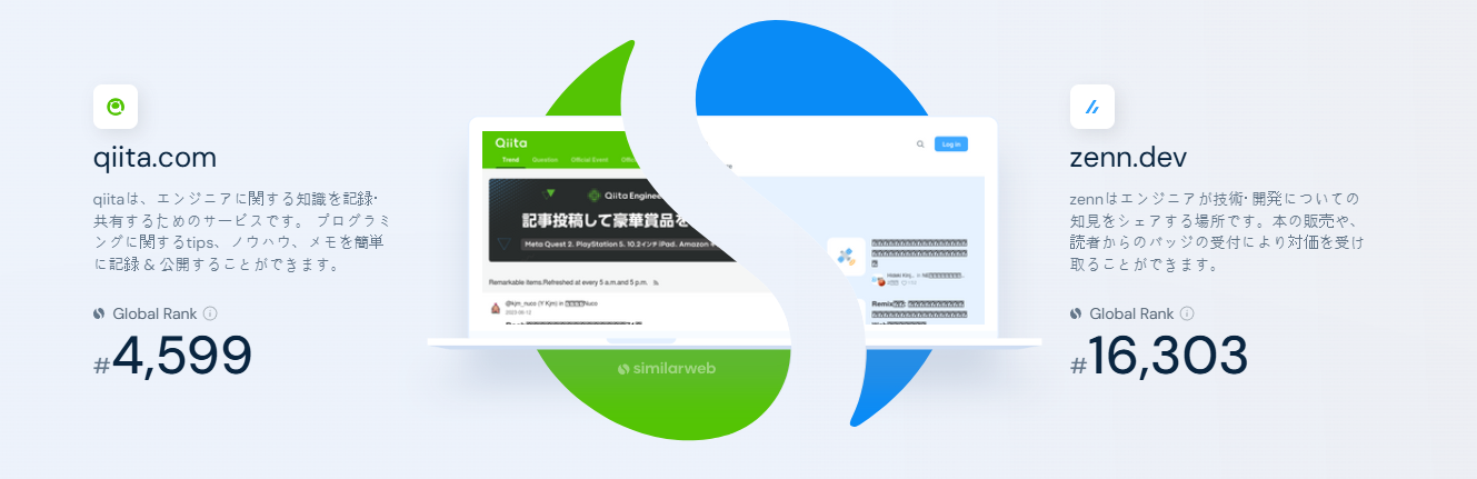 하여 global rank와 대략적인 지표와 몇가지 현지 의견을 확인해보니, 확실히 qiita쪽이 점유율과 랭크가 쎕니다. 역사가 길거든요.
