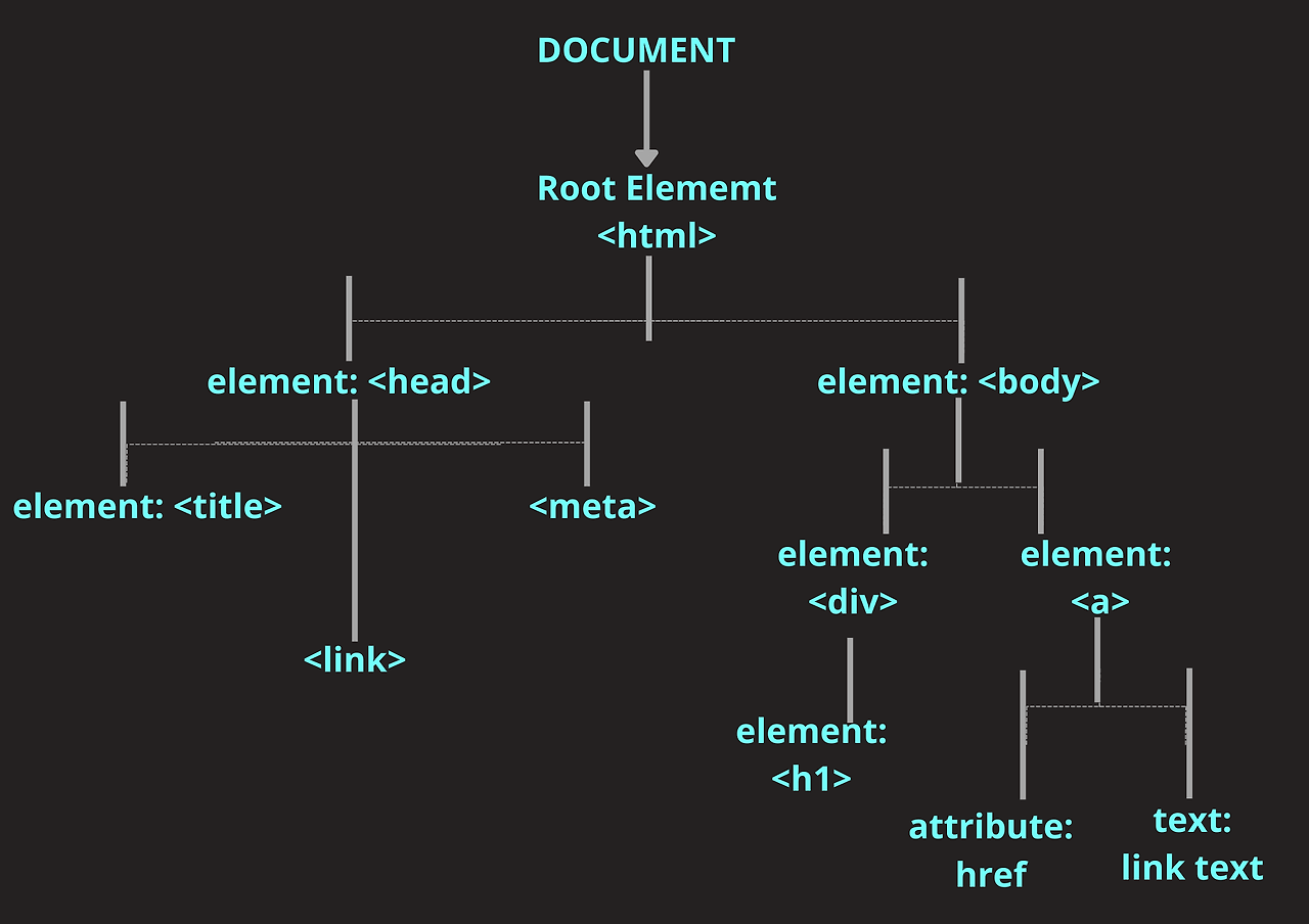 이는 웹 페이지를 구성하는 모든 html의 태그와 속성 등을 상위 하위 부모 자식 , 형제 노드 등의 관계를 가지고 있고,
