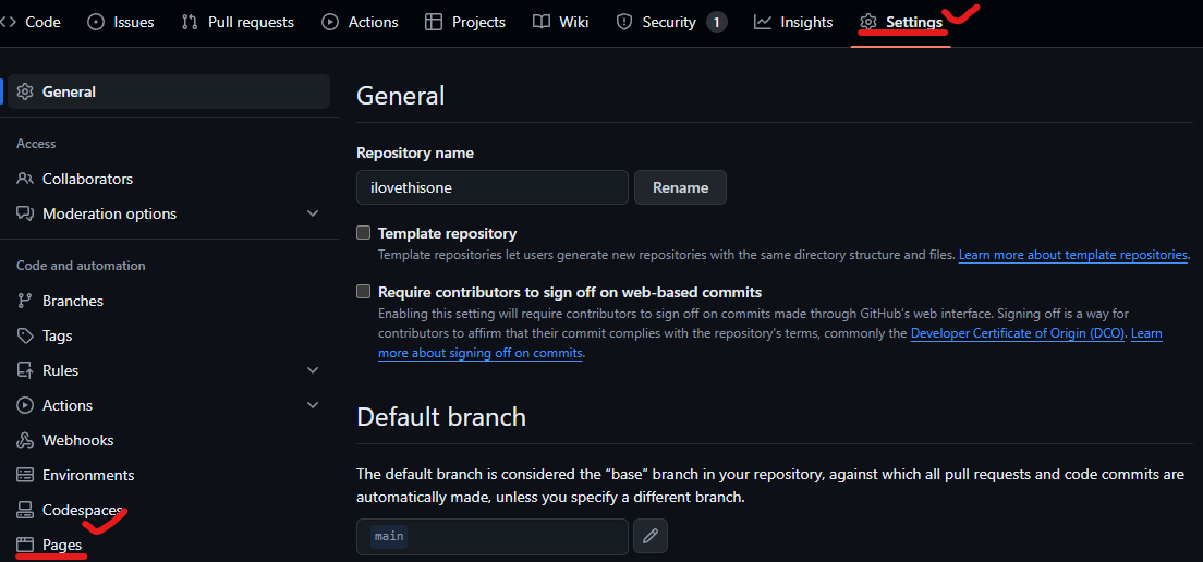 1. 정적 웹 페이지 호스팅을 위해, (저장소)Repository 생성