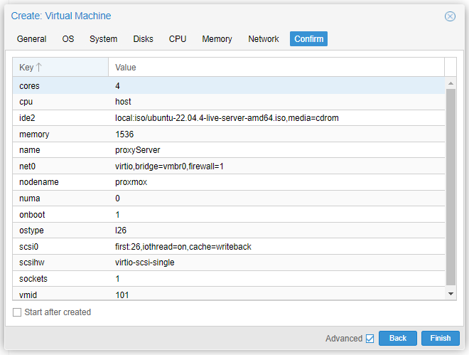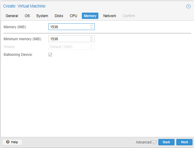 메모리 설정입니다. 저는 애초에 CLI기반의 OS에 서버용이기에 불필요한 패키지도 깔려있는 편도 아니어서 심지어 프록시 서버용으로만 사용할 VM이기에 이 VM이 그렇게까지 많은 메모리를 가져가는 것을 원치않습니다. 하여 1536MB = 1.5GB 정도만 메모리로 할당해주겠습니다. 이 글을 보시는 분은 본인의 목적에 맞게 메모리를 설정하세요.