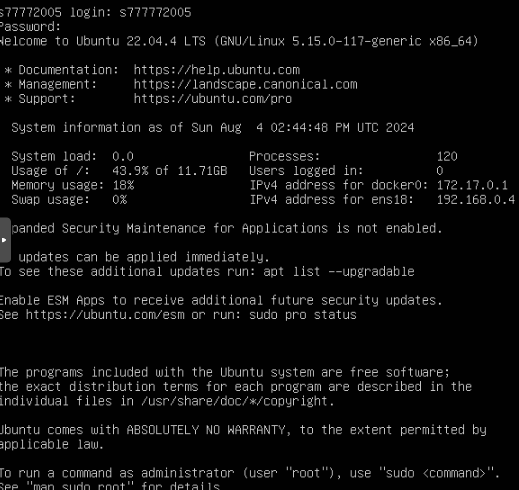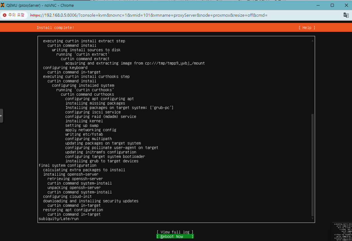 이로써 22.04 LTS SERVER 우분투 설치가 완료되었네요. 위 사항에서 혹시 ,틀린 점이나, 셋팅 잘 못한 것이 있더라도