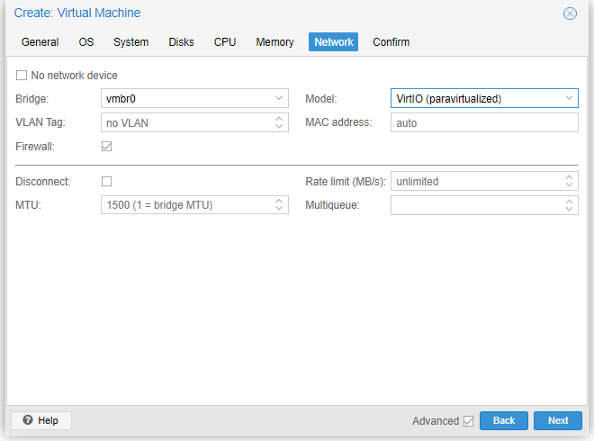 네트워크 설정입니다. Default 기본으로 두겠습니다 VirtIO일 때 성능이 가장 좋다는 말도 있네요.