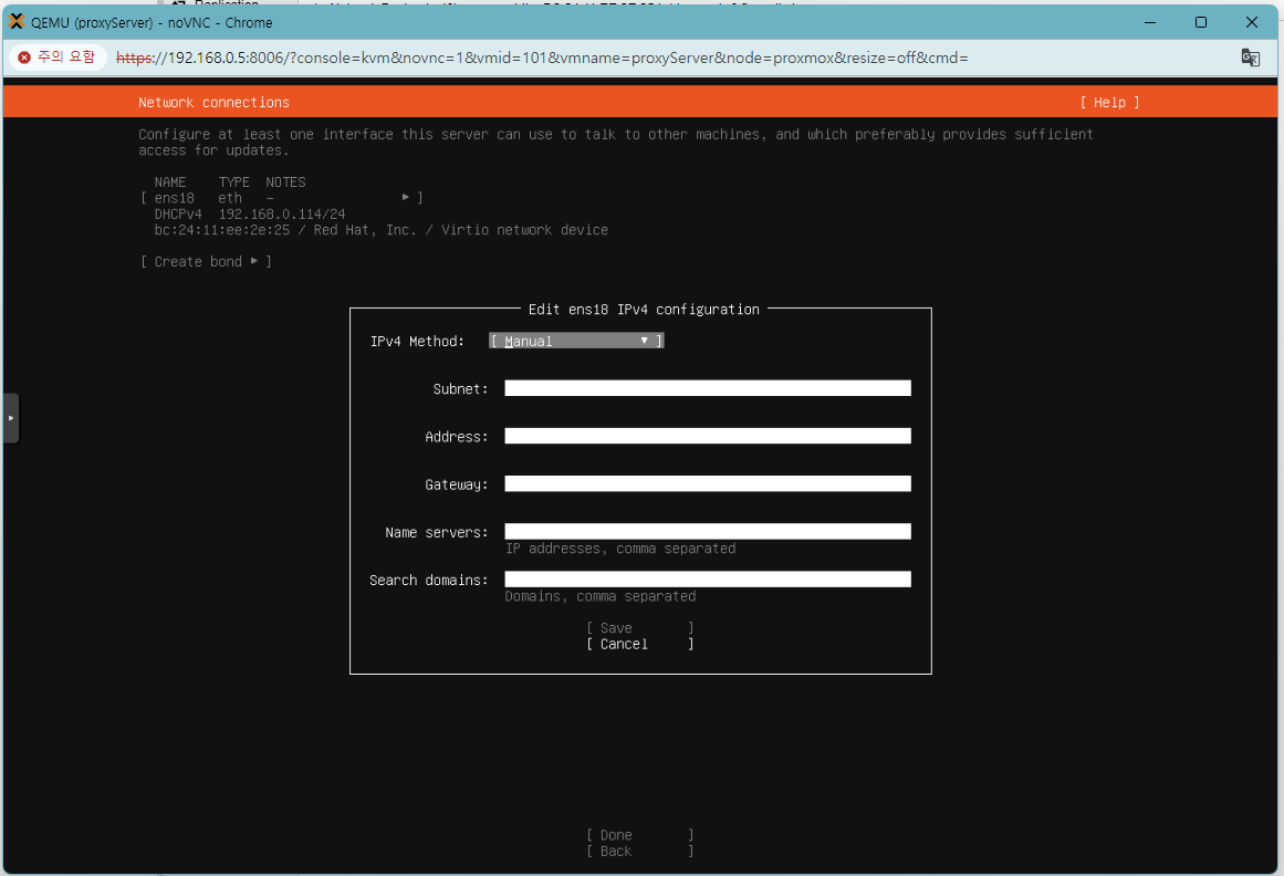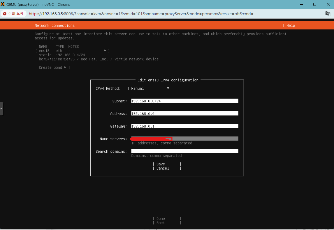 ip 설정에 맞게 설정하셨으면 done 눌러줍니다.