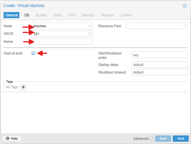 상위 Node 를 선택하시고, vm id를 입력하세요. 전 그냥 default를 선호하는 편이어서 그냥 냅뒀습니다. 기본적으로 vm 생성할 때마다 vm id는 102, 103 , 104 식으로 +1씩 늘어나있어요.