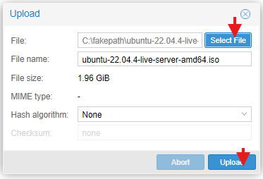 Seletect file 선택하여, 아까 다운로드 받은 ubuntu 22.04 lts 파일을 선택 후 업로드 버튼을 눌러줍니다.