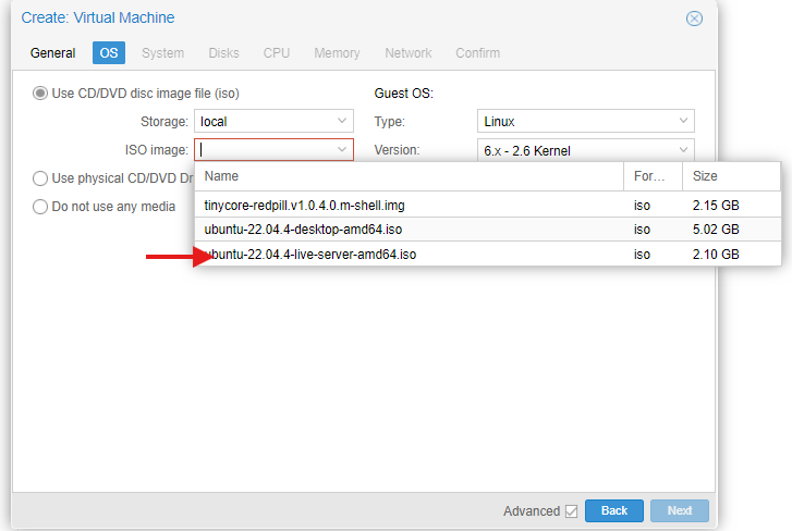 아까 프록스목스로 업로드한 iso파일을 선택해줍니다.