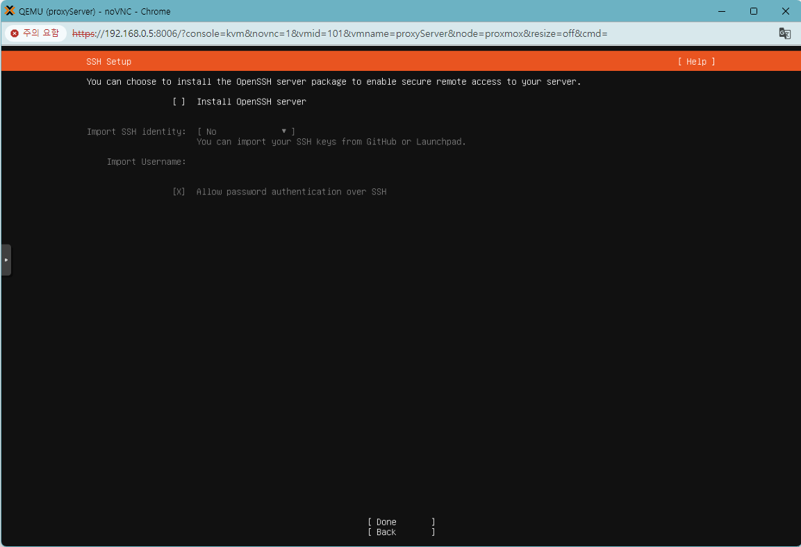 이 vm node의 이름을 적어줍니다. 저는 이 서버를 프록시 서버로 사용할 예정이어서 proxyServer라고 하겠습니다.