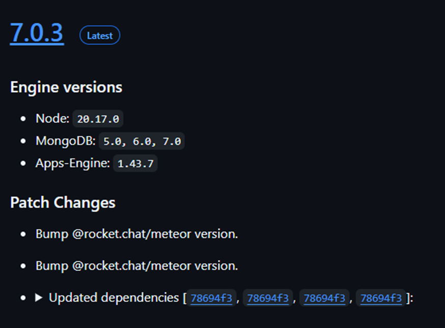 제가 Rokcet.chat을 설치하고싶었던 버전은 최신버전인 7.0.3이었습니다.
