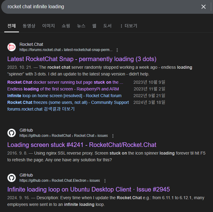 Rocket.chat의 문제 (UI는 이뻣는데...제일 심플하고 ZULIP보다 좋았습니다. Simple is best )1. 문제가 발생한지 3년 2년이 되는 문제를 오픈 소스 기여자들이 해결해주지 않는다.-> 제일 큰 단점이라고 생각합니다. 2년 3년이나 되었고, 스택오버플로우랑 레딧에 저렇게나 올라오는 정도면 해결해줘야하는 거아닌가요? .. 그래서 다른 사용자들은 대체 이 오픈 소스를 어떻게 이용하고 있느냐?