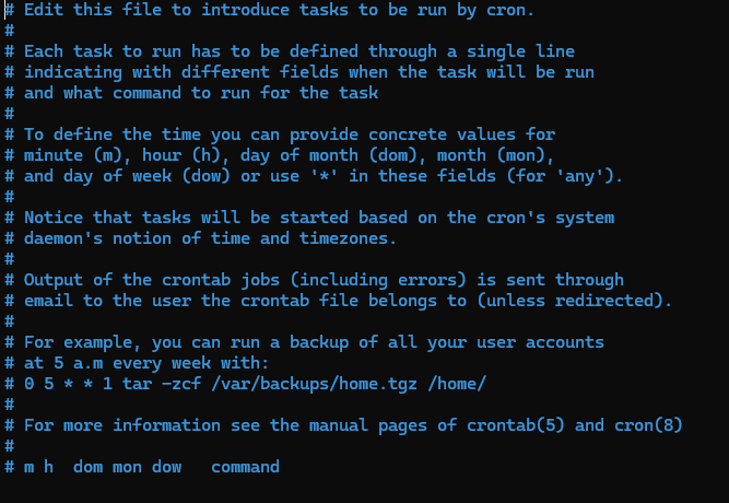 제일 아래쪽에 뭐 내용을 넣으면 되는데 , 나는 특정 시간에 이 우분투 리눅스 서버를 재시작하는 것이 목표이기에,