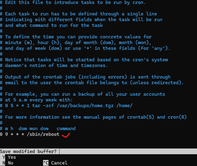 0 9 * * * /sbin/reboot