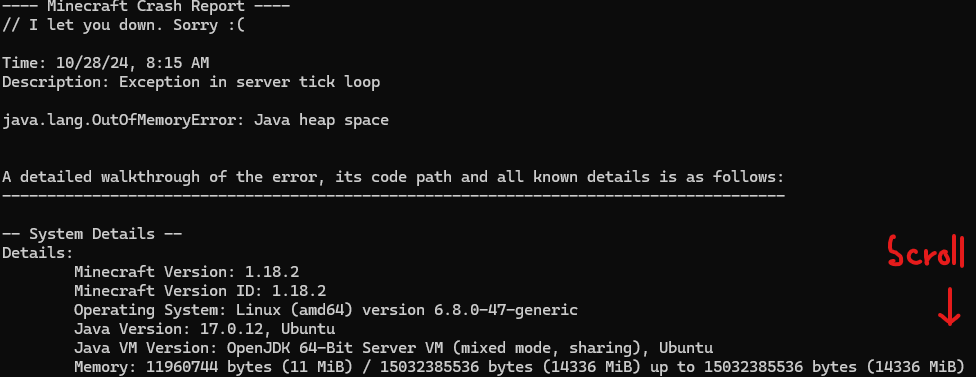 각설하여 원인을 정리해보자. 위에 충돌의 원인은 outOfMemoryError 이다. 서버 가용량 메모리가 부족해서 서버가 충돌이 발생한 것이다.
